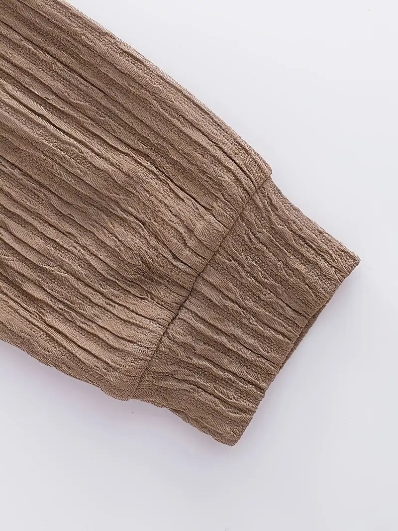 Realizzato in un tessuto traspirante e strutturato, Rushana offre libertà di movimento e comfort che dura tutto il giorno. Il design minimal e la vestibilità rilassata valorizzano ogni silhouette, mentre il taglio armonioso del top e del pantalone crea un insieme equilibrato e chic. Ideale per momenti di relax, passeggiate o incontri informali, è il set che unisce comfort e femminilità in ogni occasione.